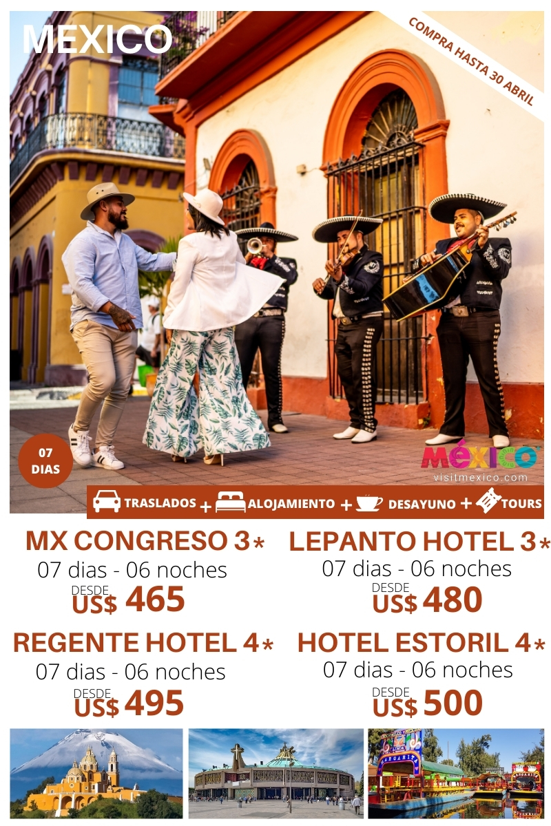MEXICO COMPLETO 07 DIAS – 06 NOCHES Traslado Aeropuerto – Hotel – Aeropuerto 06 noches de alojamiento. Plan de alimentación: Desayuno Teotihuacán, santuario de guadalupe y tour por ciudad de México. Taxco, Cuernavaca y Puebla, Cholula. Xochimilco, Coyoacán y el Museo Frida Kahlo. City Tour, Museo de Antropología & Bellas Artes.   HOTEL DWB TPL…