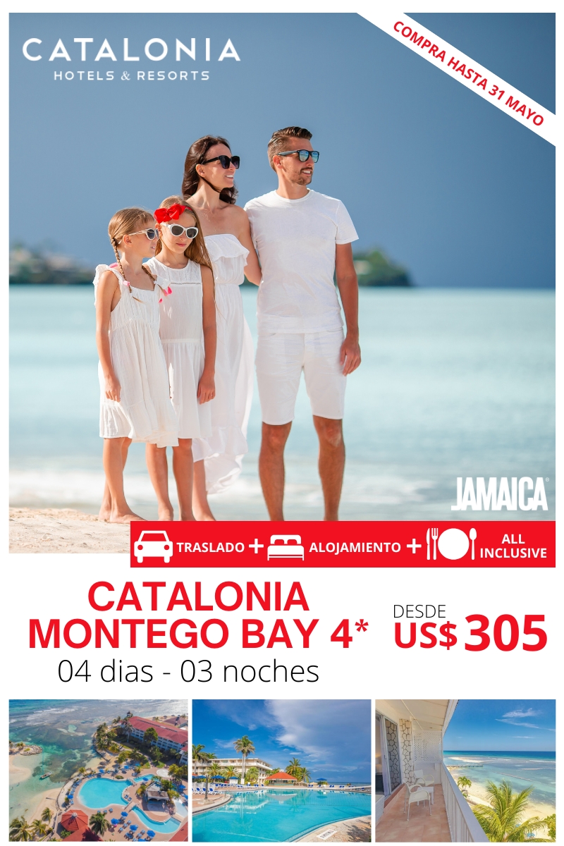 CATALONIA HOTELS JAMAICA 04 DIAS – 03 NOCHES Traslado Aeropuerto – Hotel – Aeropuerto. 03 noches de alojamiento. Sistema de alimentación: All Inclusive. Uso de las instalaciones del hotel.   HOTEL DWB NA TPL NA CHD NA CATALONIA MONTEGO BAY 4* 305 95 290 90 155 45   IMPORTANTE: Comisión 10% del servicio, por pasajero…