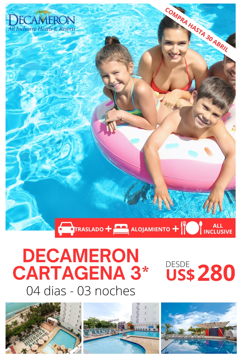 DECAMERON CARTAGENA 04 DIAS – 03 NOCHES Traslado Aeropuerto – Hotel – Aeropuerto 03 noches de alojamiento. Plan de alimentación: All Inclusive Uso de las instalaciones del hotel. HOTEL DWB NA TPL NA CHD NA DECAMERON CARTAGENA 4* 280 85 255 75 145 45 IMPORTANTE: Comisión 10% del servicio, por pasajero adulto. …