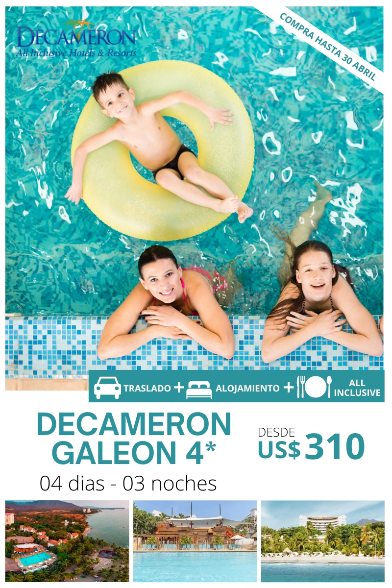 DECAMERON SANTA MARTA 04 DIAS – 03 NOCHES Traslado Aeropuerto – Hotel – Aeropuerto 03 noches de alojamiento. Plan de alimentación: All Inclusive Uso de las instalaciones del hotel. HOTEL DWB NA TPL NA CHD NA DECAMERON GALEON 4* 310 95 280 85 160 45 IMPORTANTE: Comisión 10% del servicio, por pasajero adulto. …
