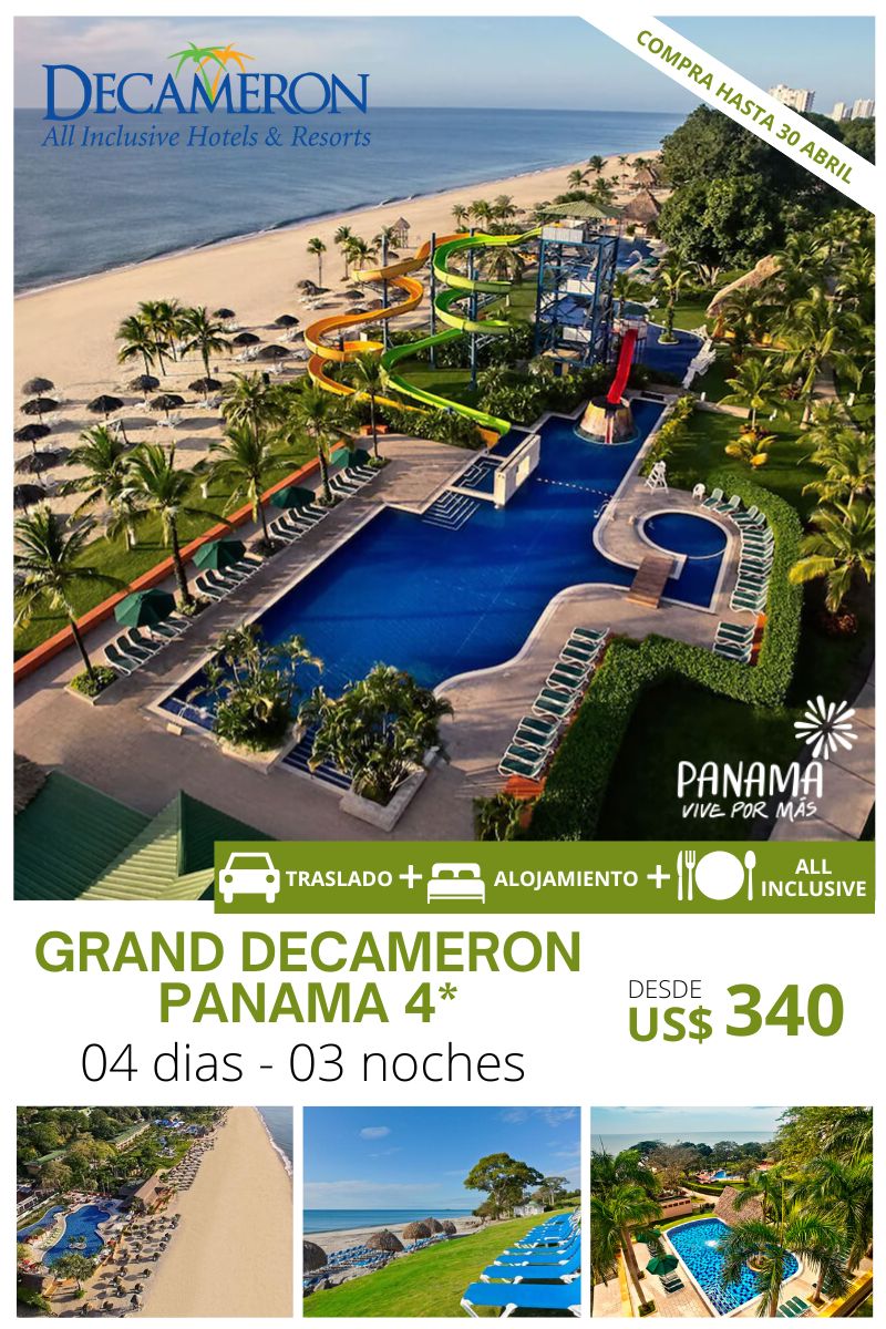 Decameron Panama 04 DIAS – 03 NOCHES Traslado Aeropuerto – Hotel – Aeropuerto 03 noches de alojamiento. Plan de alimentación: All Inclusive. Uso de las instalaciones del hotel. HOTEL DWB NA TPL NA CHD NA GRAND DECAMERON PANAMA 4* 340 80 320 70 220 50 IMPORTANTE: Comisión 10% del servicio, por pasajero adulto. …